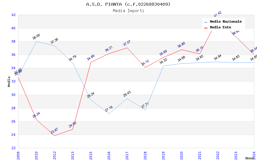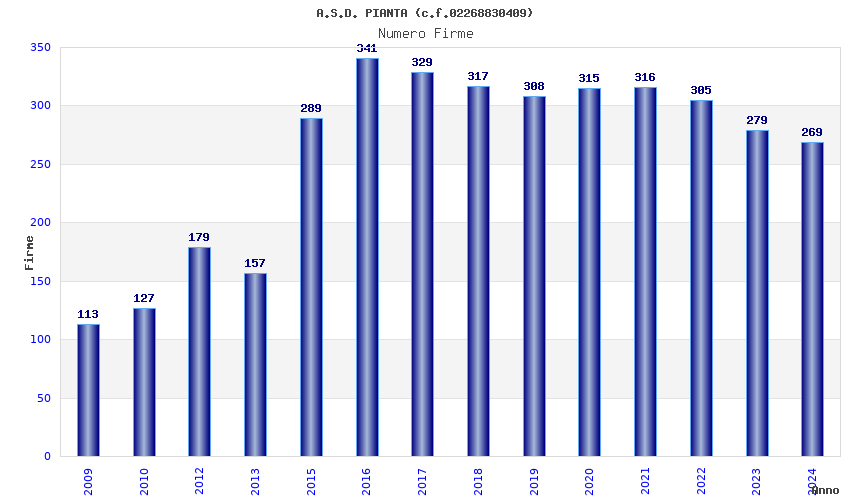 | Anno | Firme | Importi | Media | Naz. | Reg. | Prov. | Comu. |
