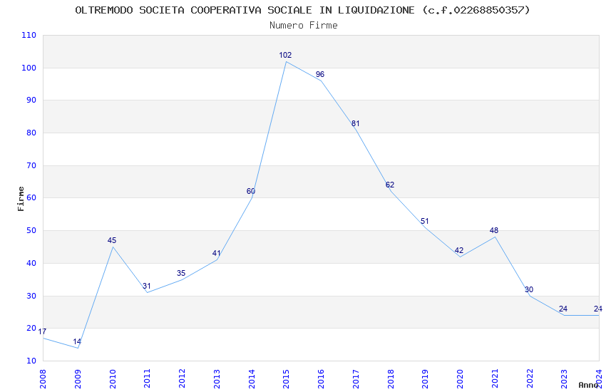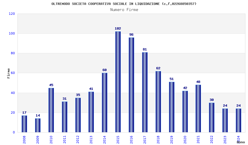 | 2015 | 102 | 4.617,10 | 45,27 | 11.477 | 1.043 | 142 | 56 |
