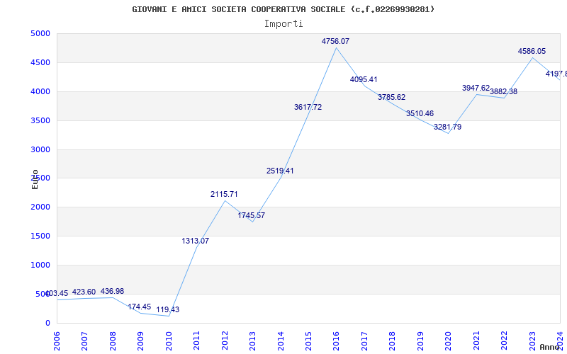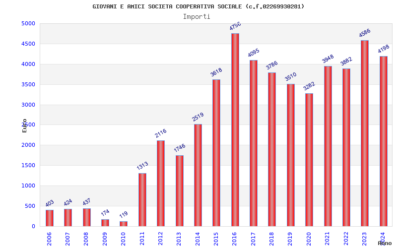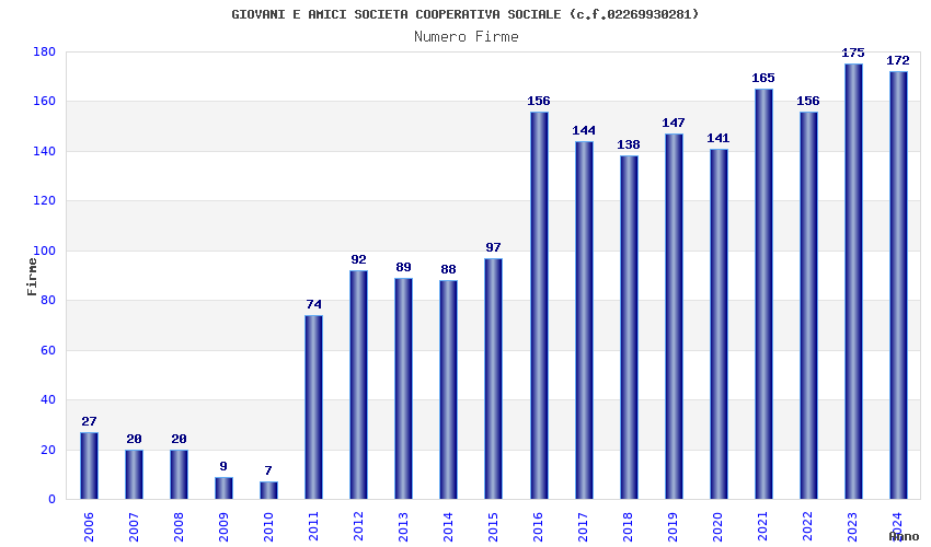 | Anno | Firme | Importi | Media | Naz. | Reg. | Prov. | Comu. |
