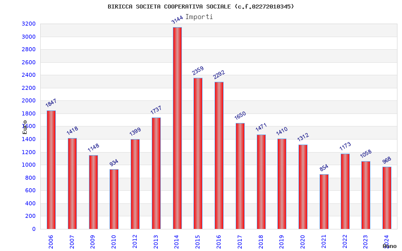 | Anno | Firme | Importi | Media | Naz. | Reg. | Prov. | Comu. |