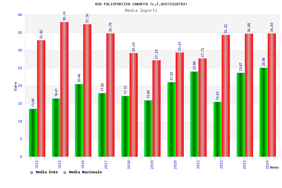 | Anno | Firme | Importi | Media | Naz. | Reg. | Prov. | Comu. |