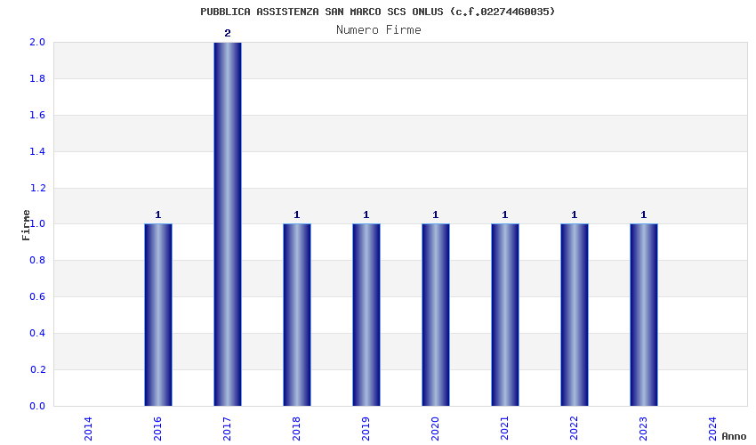 | Anno | Firme | Importi | Media | Naz. | Reg. | Prov. | Comu. |