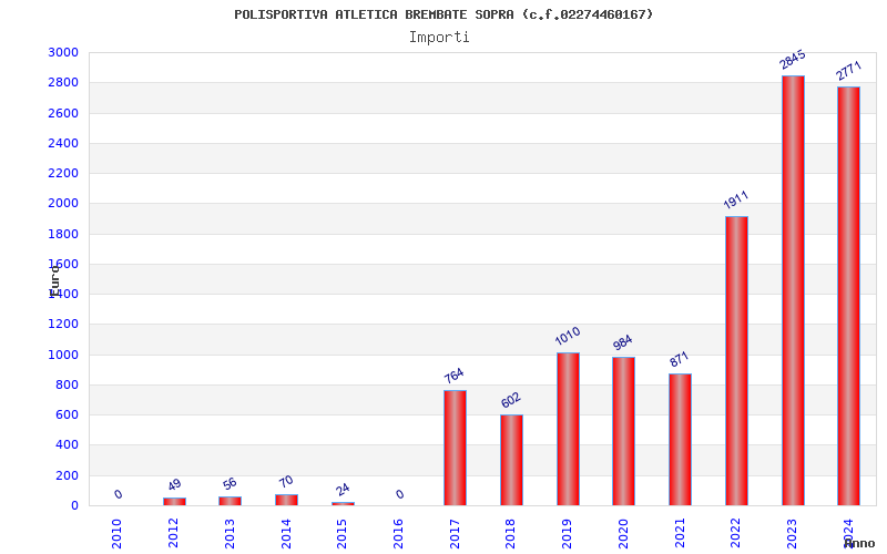 | Anno | Firme | Importi | Media | Naz. | Reg. | Prov. | Comu. |
