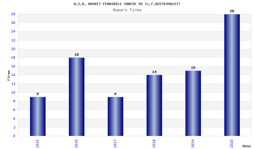 | Anno | Firme | Importi | Media | Naz. | Reg. | Prov. | Comu. |