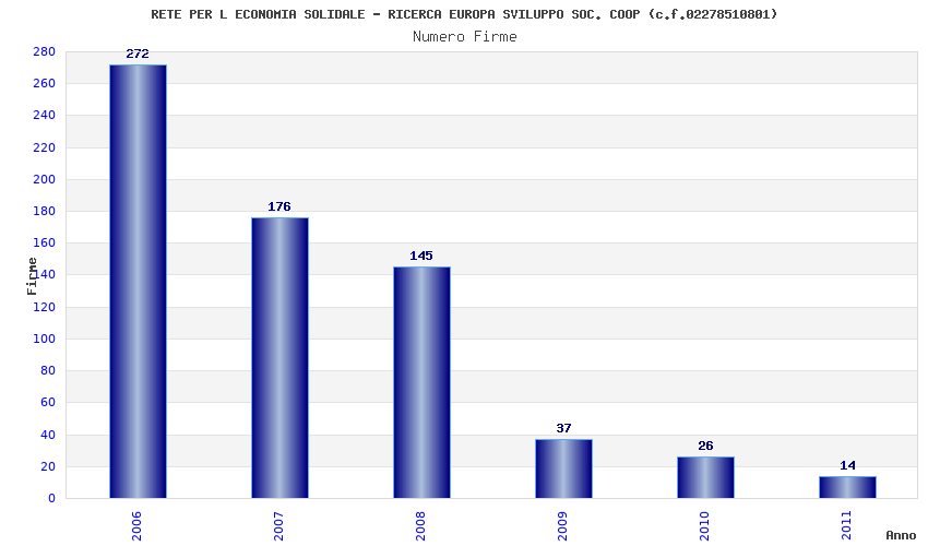 | Anno | Firme | Importi | Media | Naz. | Reg. | Prov. | Comu. |