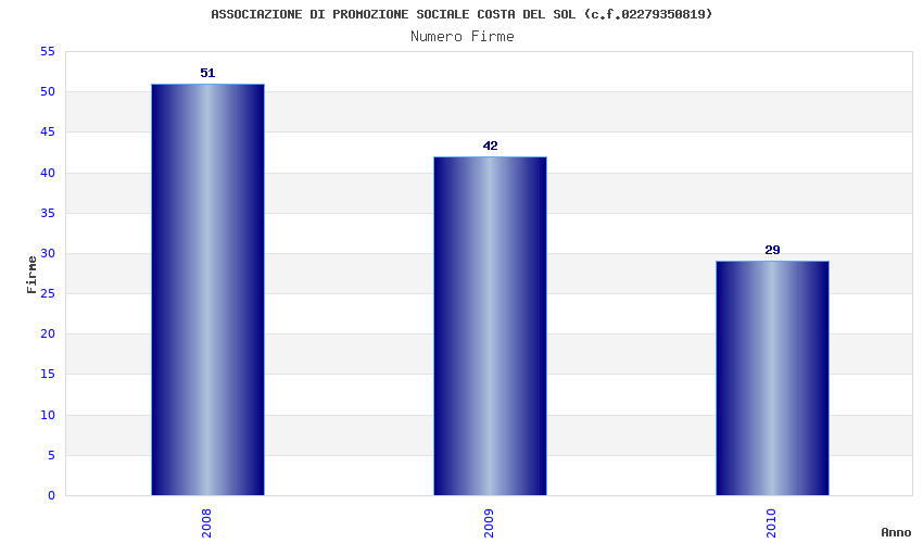 | Anno | Firme | Importi | Media | Naz. | Reg. | Prov. | Comu. |