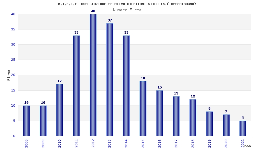 | Anno | Firme | Importi | Media | Naz. | Reg. | Prov. | Comu. |