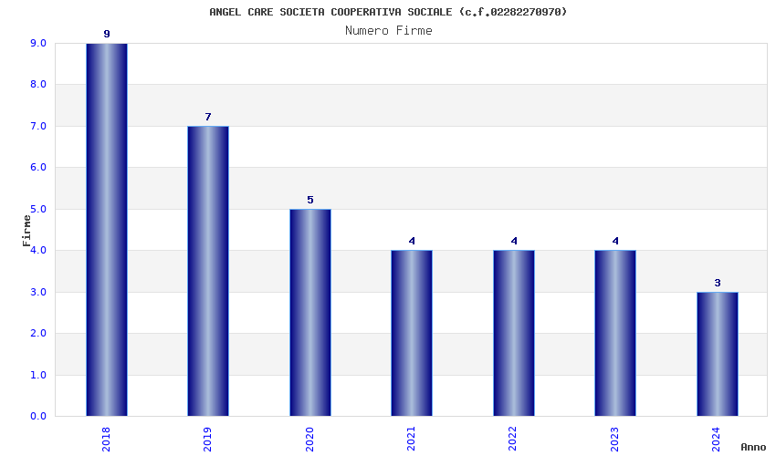 | Anno | Firme | Importi | Media | Naz. | Reg. | Prov. | Comu. |