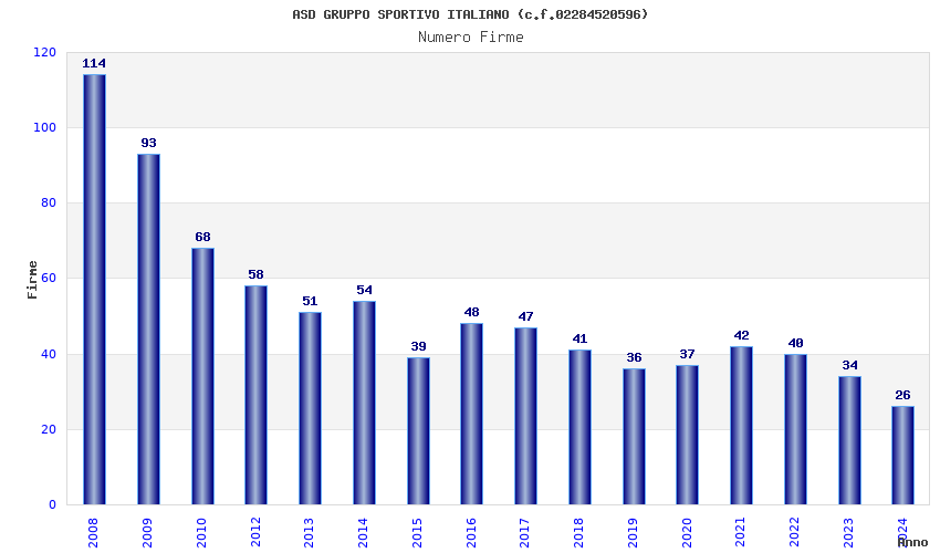 | Anno | Firme | Importi | Media | Naz. | Reg. | Prov. | Comu. |