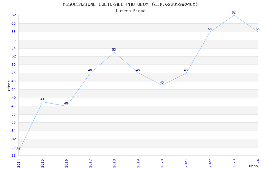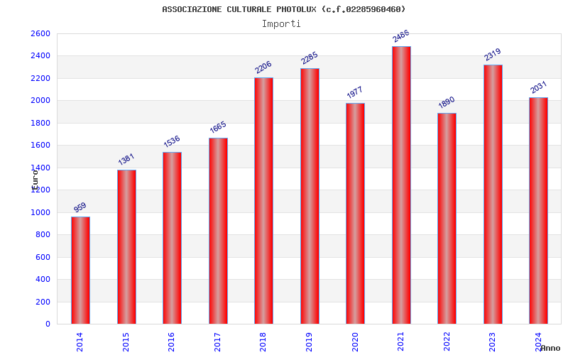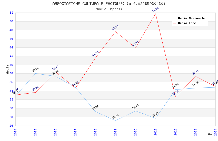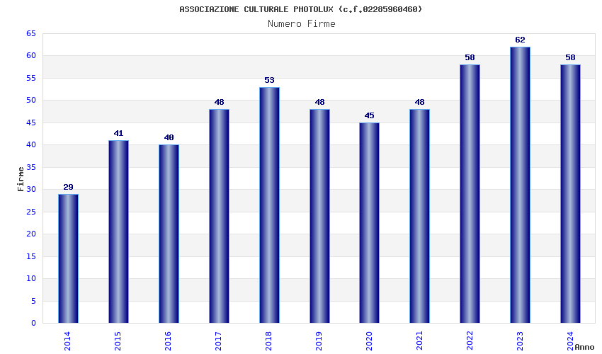 | Anno | Firme | Importi | Media | Naz. | Reg. | Prov. | Comu. |