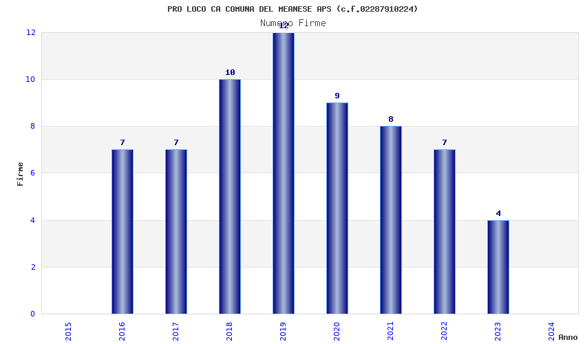 | Anno | Firme | Importi | Media | Naz. | Reg. | Prov. | Comu. |