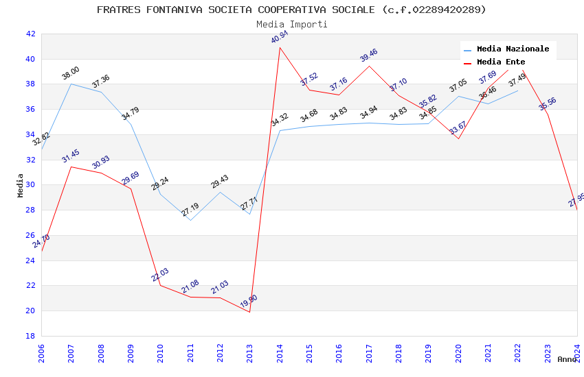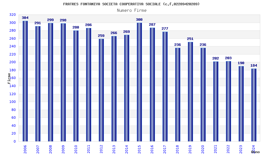 | Anno | Firme | Importi | Media | Naz. | Reg. | Prov. | Comu. |