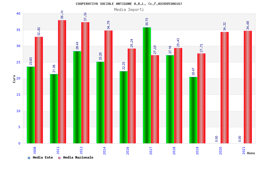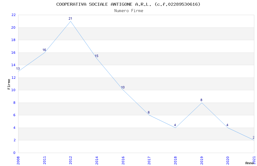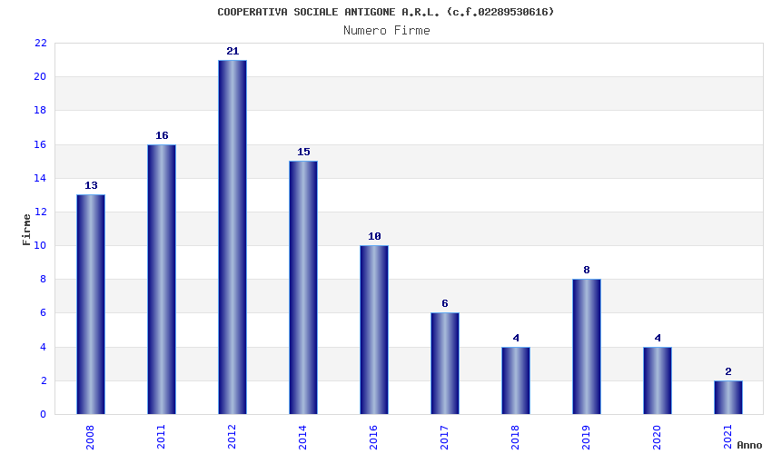 | Anno | Firme | Importi | Media | Naz. | Reg. | Prov. | Comu. |