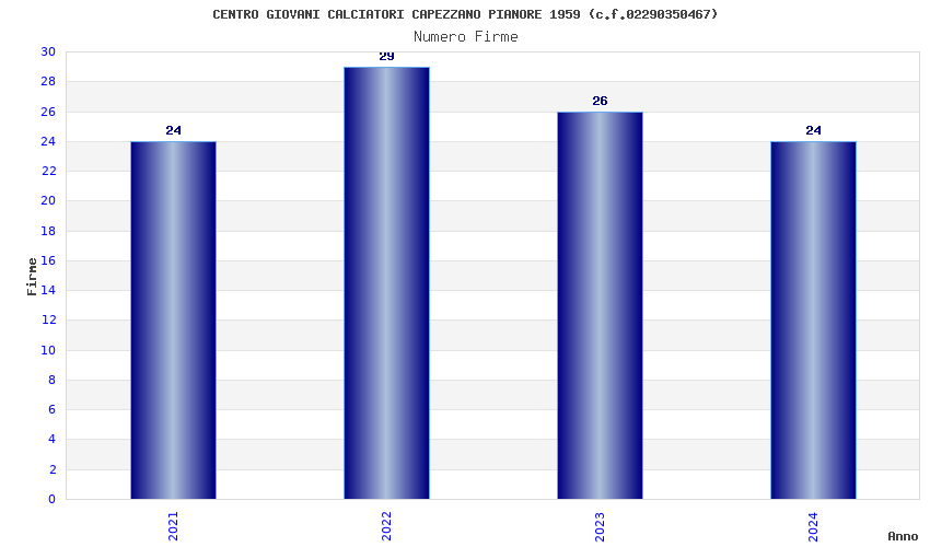 | Anno | Firme | Importi | Media | Naz. | Reg. | Prov. | Comu. |