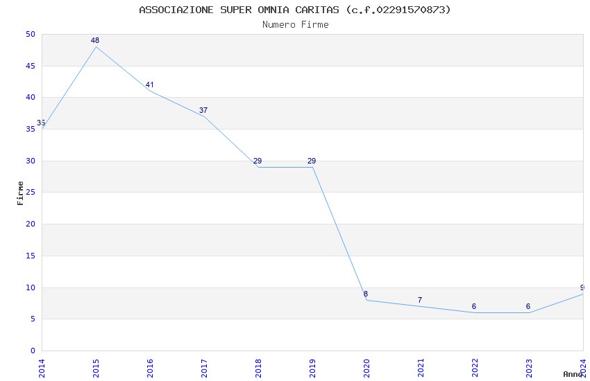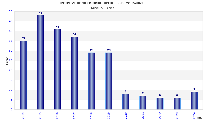 | Anno | Firme | Importi | Media | Naz. | Reg. | Prov. | Comu. |