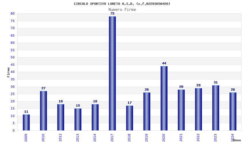 | 2017 | 78 | 1.431,43 | 18,35 | 28.715 | 710 | 276 | 7 |