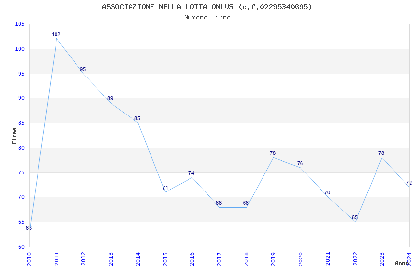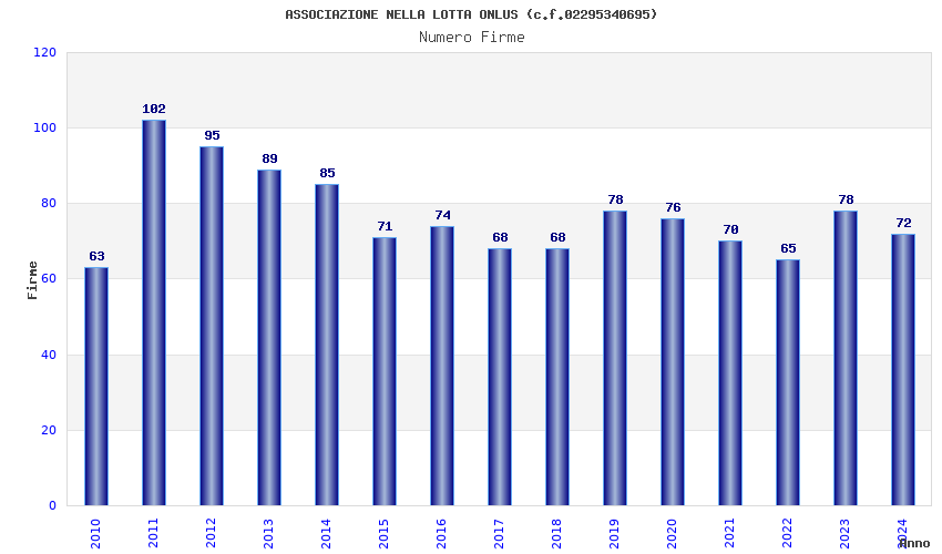 | Anno | Firme | Importi | Media | Naz. | Reg. | Prov. | Comu. |
