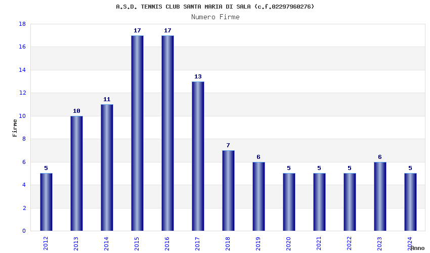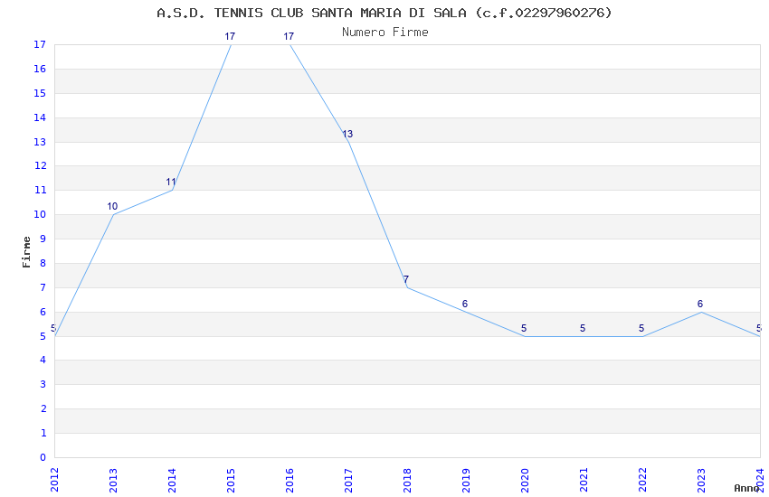 | 2017 | 13 | 616,72 | 47,44 | 41.322 | 3.830 | 545 | 11 |