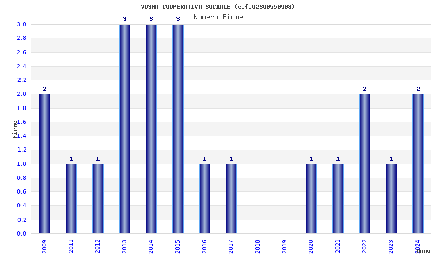 | Anno | Firme | Importi | Media | Naz. | Reg. | Prov. | Comu. |