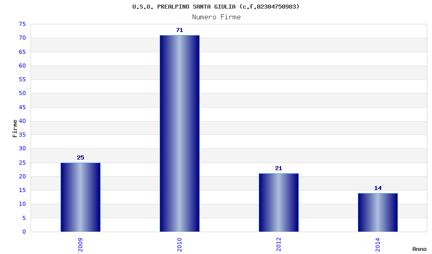 | Anno | Firme | Importi | Media | Naz. | Reg. | Prov. | Comu. |