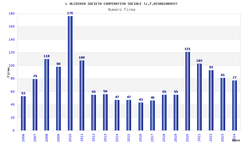 | Anno | Firme | Importi | Media | Naz. | Reg. | Prov. | Comu. |