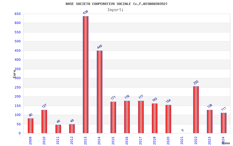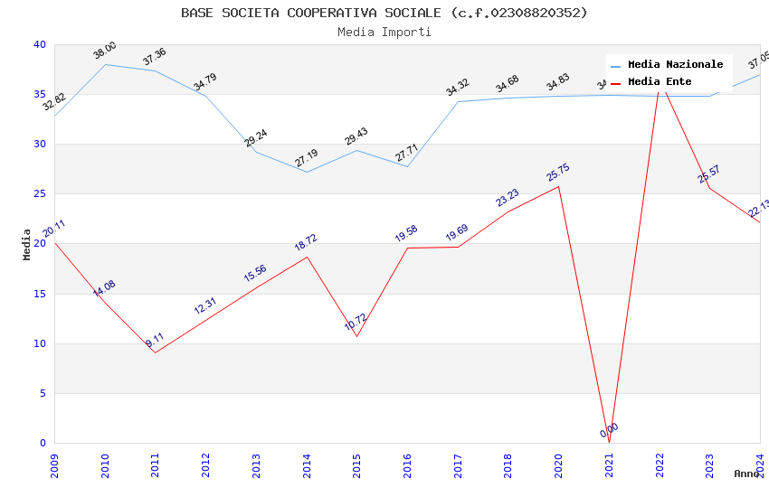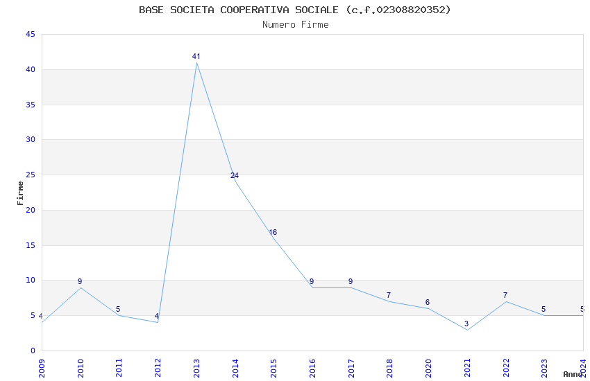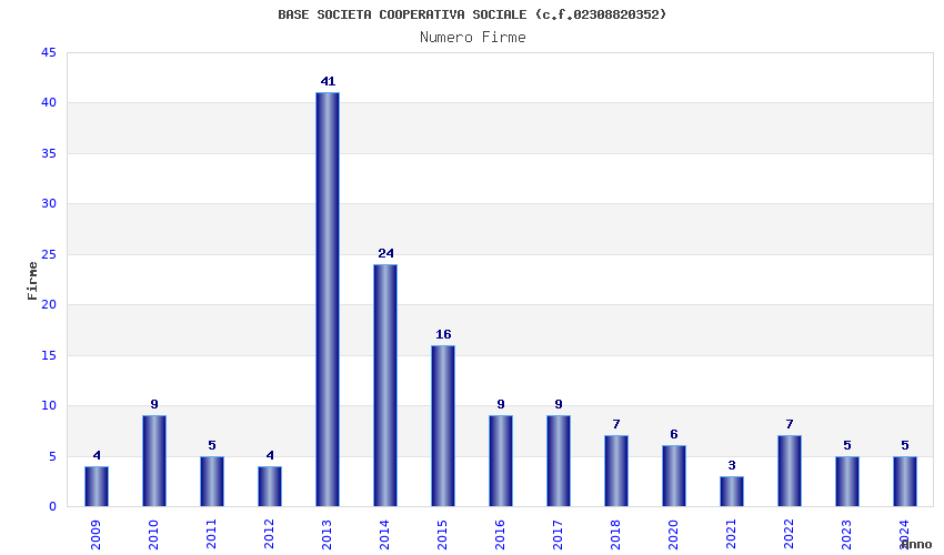 | Anno | Firme | Importi | Media | Naz. | Reg. | Prov. | Comu. |