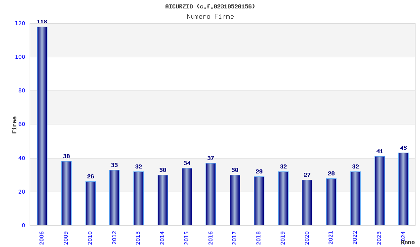 | Anno | Firme | Importi | Media | Naz. | Reg. | Prov. | Comu. |