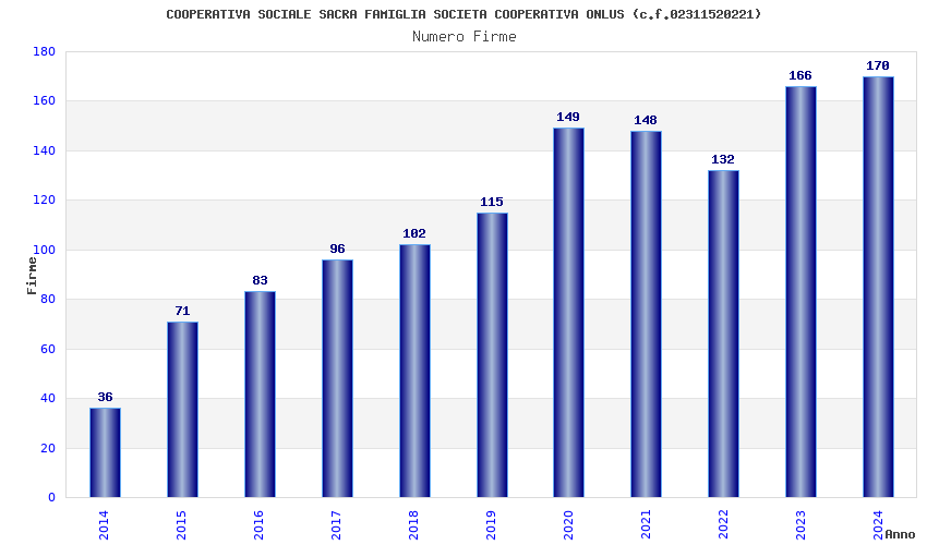 | Anno | Firme | Importi | Media | Naz. | Reg. | Prov. | Comu. |
