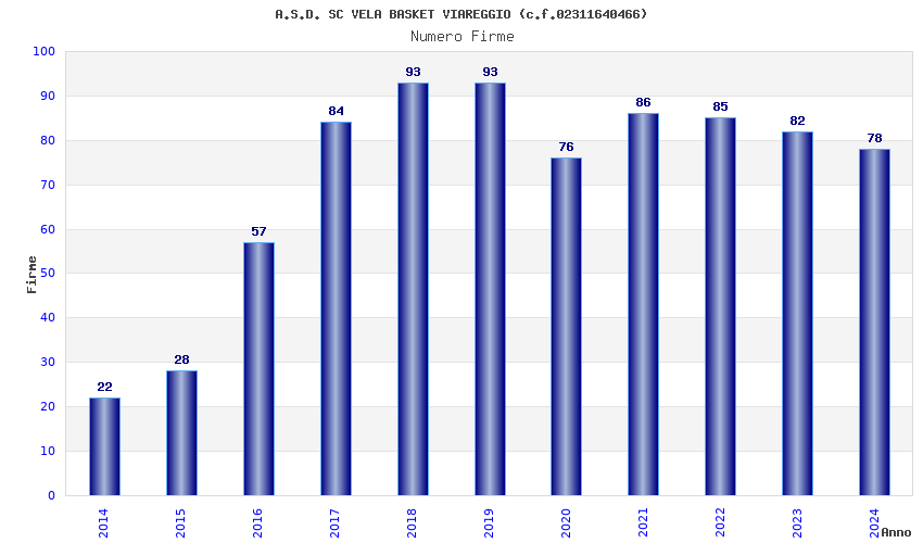 | 2022 | 85 | 3.561,46 | 41,90 | 14.582 | 938 | 96 | 12 |