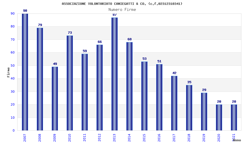 | Anno | Firme | Importi | Media | Naz. | Reg. | Prov. | Comu. |
