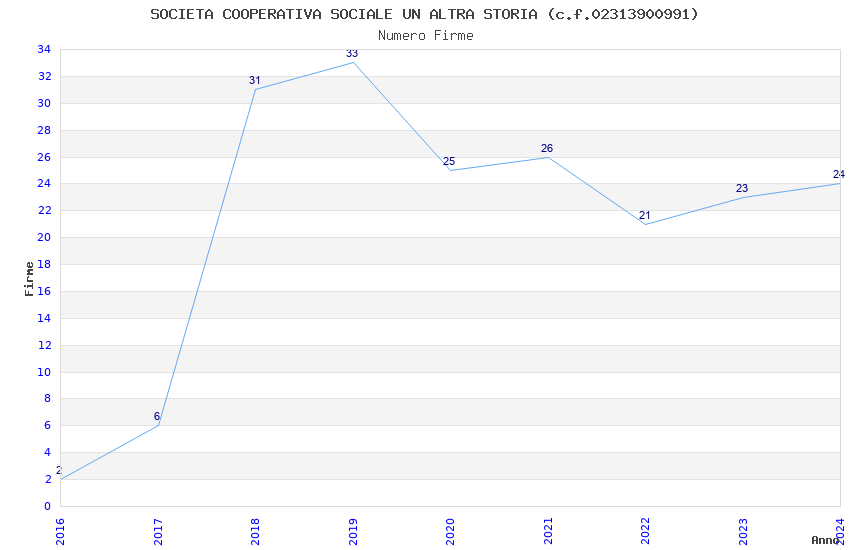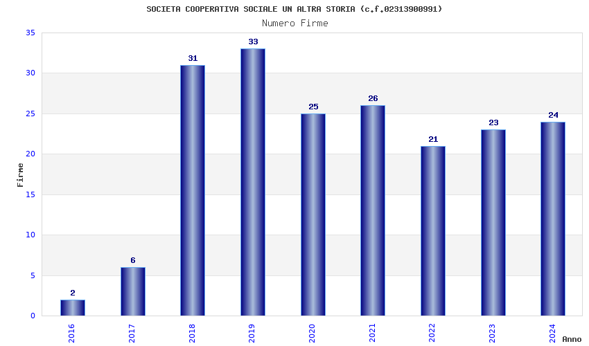 | Anno | Firme | Importi | Media | Naz. | Reg. | Prov. | Comu. |