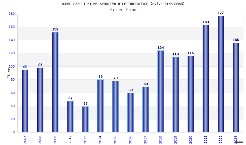 | Anno | Firme | Importi | Media | Naz. | Reg. | Prov. | Comu. |