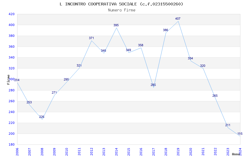 | 2019 | 407 | 8.561,62 | 21,04 | 6.229 | 564 | 82 | 4 |