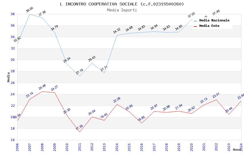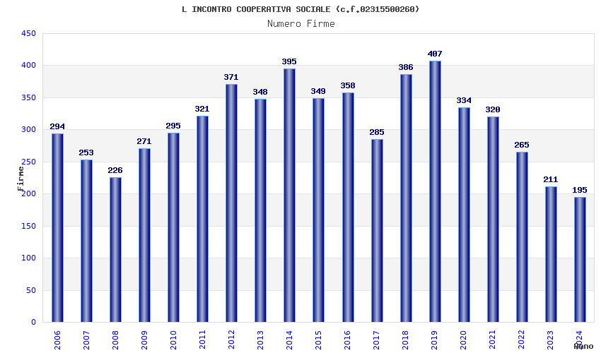 | Anno | Firme | Importi | Media | Naz. | Reg. | Prov. | Comu. |