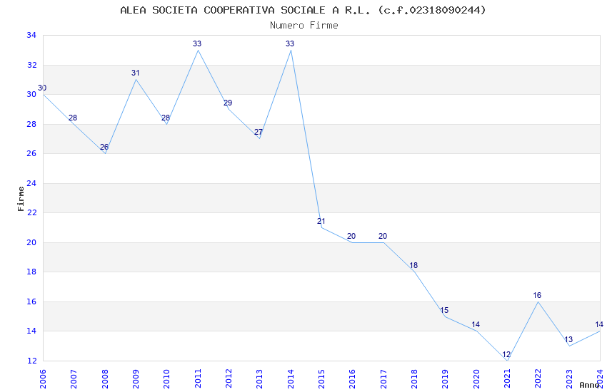 | 2011 | 33 | 523,79 | 15,87 | 24.742 | 2.141 | 405 | 19 |