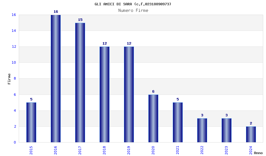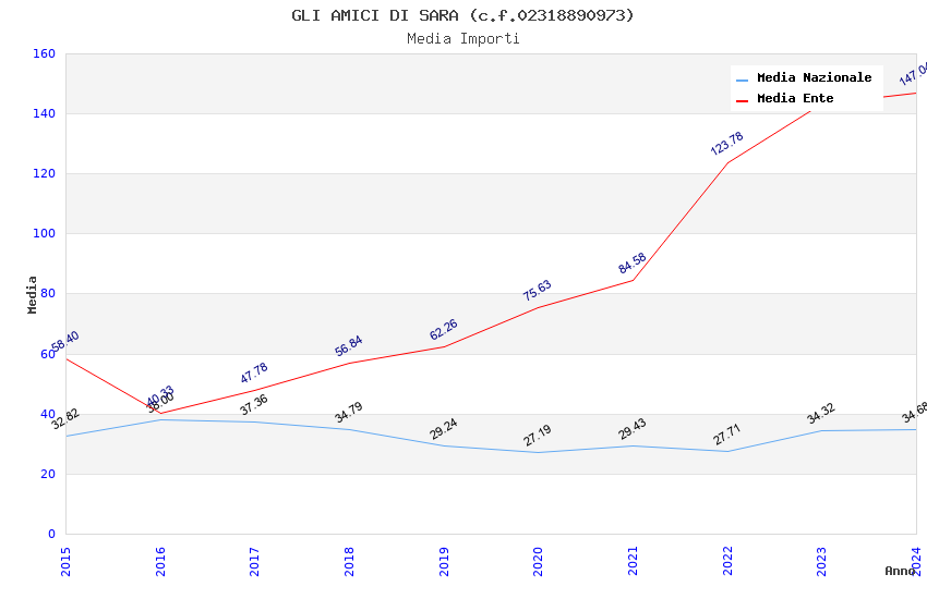 | Anno | Firme | Importi | Media | Naz. | Reg. | Prov. | Comu. |