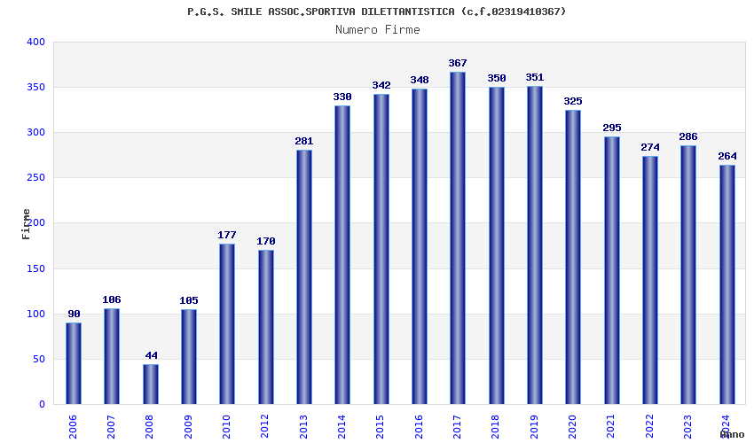 | Anno | Firme | Importi | Media | Naz. | Reg. | Prov. | Comu. |