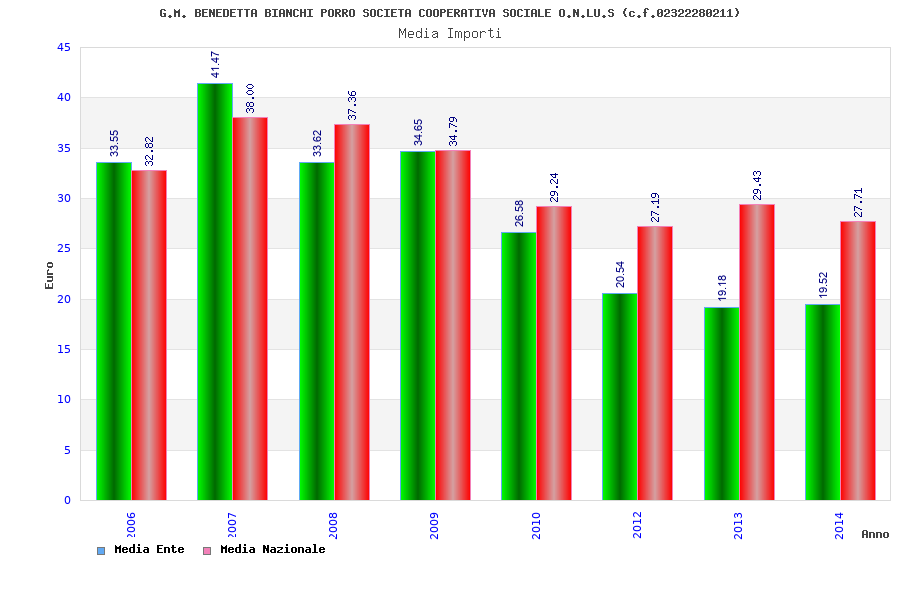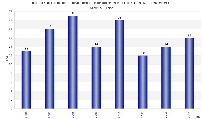 | Anno | Firme | Importi | Media | Naz. | Reg. | Prov. | Comu. |