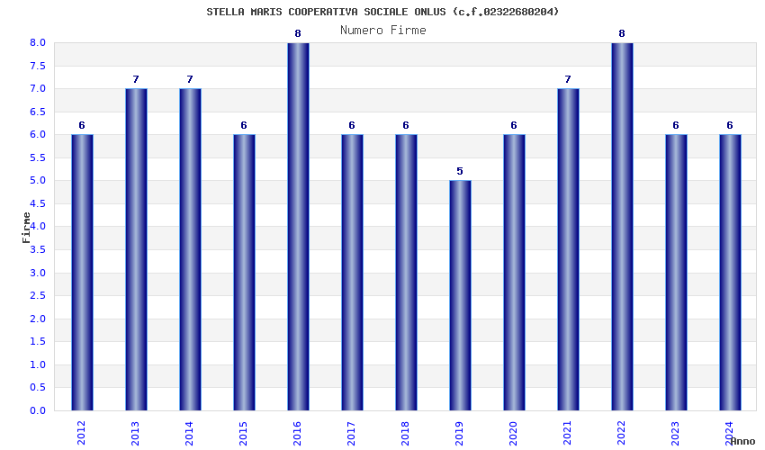 | Anno | Firme | Importi | Media | Naz. | Reg. | Prov. | Comu. |