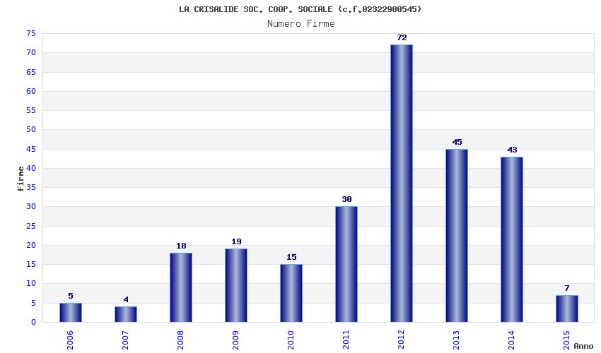 | Anno | Firme | Importi | Media | Naz. | Reg. | Prov. | Comu. |