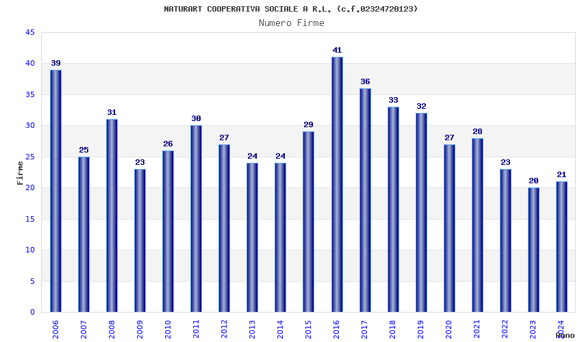 | Anno | Firme | Importi | Media | Naz. | Reg. | Prov. | Comu. |