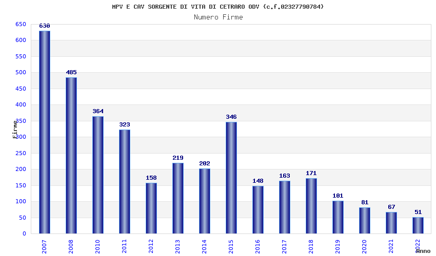 | 2007 | 630 | 14.150,96 | 22,46 | 2.708 | 46 | 19 | 1 |