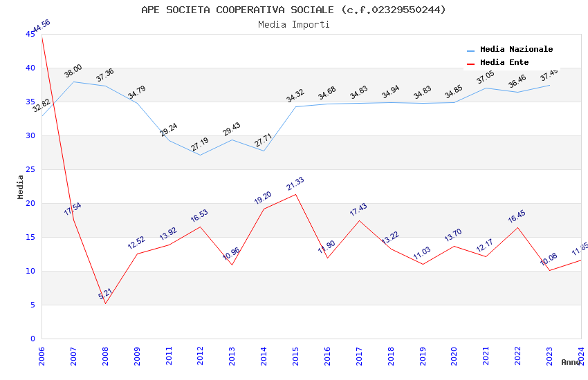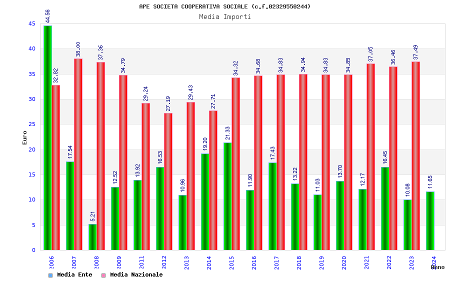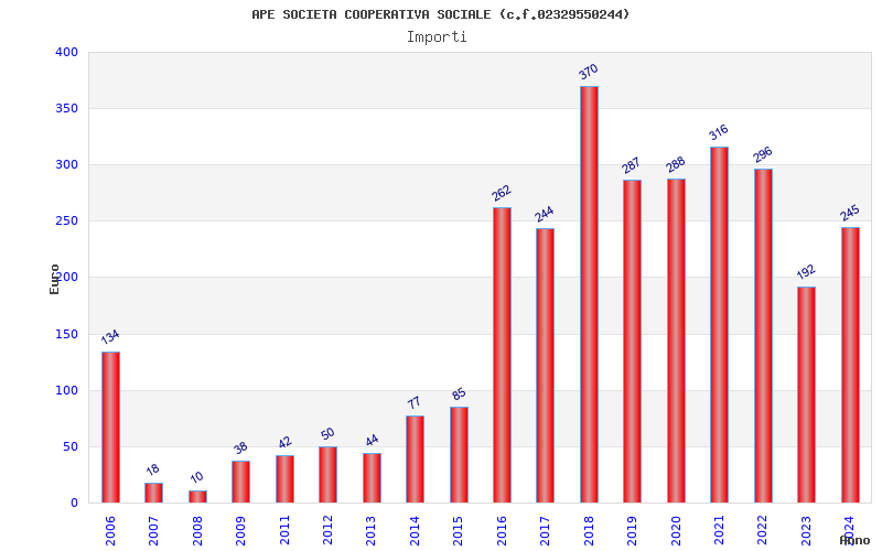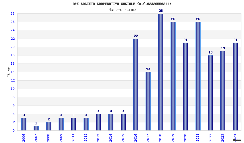 | Anno | Firme | Importi | Media | Naz. | Reg. | Prov. | Comu. |