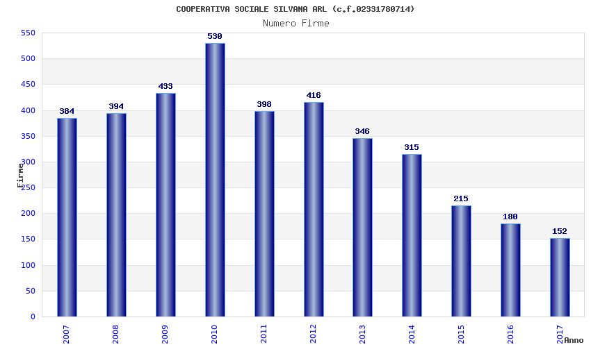 | Anno | Firme | Importi | Media | Naz. | Reg. | Prov. | Comu. |