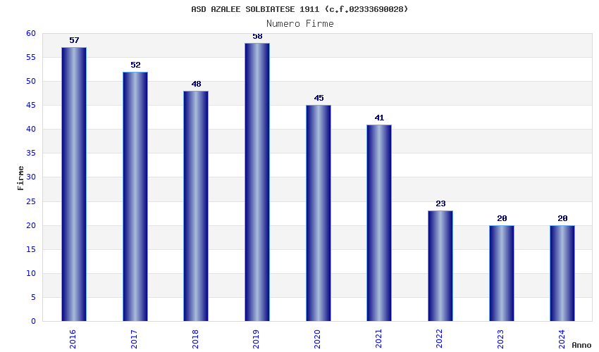 | Anno | Firme | Importi | Media | Naz. | Reg. | Prov. | Comu. |