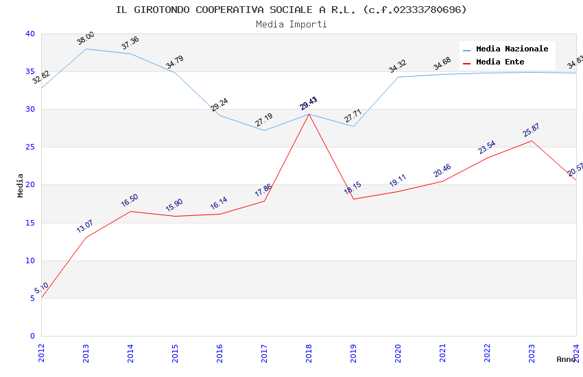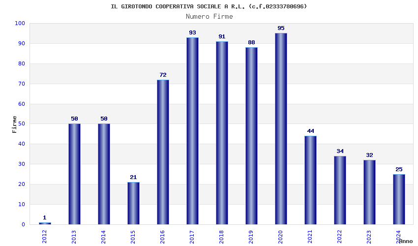 | Anno | Firme | Importi | Media | Naz. | Reg. | Prov. | Comu. |