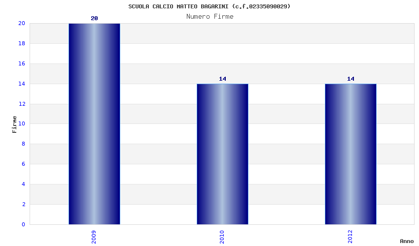 | Anno | Firme | Importi | Media | Naz. | Reg. | Prov. | Comu. |