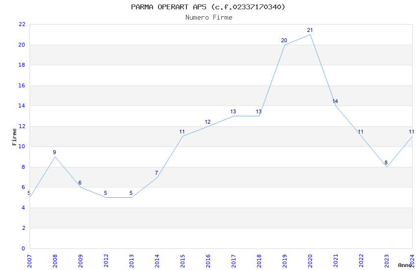 | 2020 | 21 | 732,51 | 34,88 | 41.375 | 3.701 | 467 | 241 |