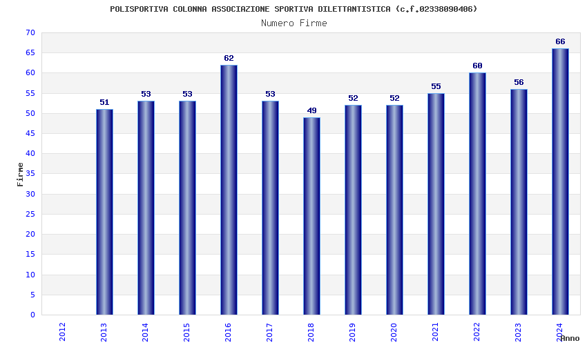 | Anno | Firme | Importi | Media | Naz. | Reg. | Prov. | Comu. |