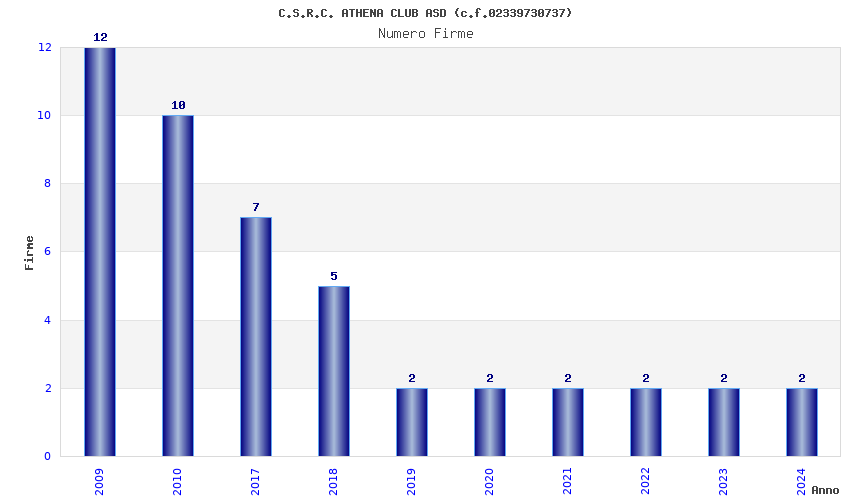 | Anno | Firme | Importi | Media | Naz. | Reg. | Prov. | Comu. |